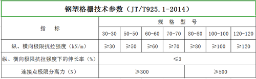 3、凸結(jié)點(diǎn)鋼塑土工格柵規(guī)格型號(hào)根據(jù)拉力的方向,有單向和雙向之分,凸結(jié)點(diǎn)鋼塑土工格柵每延米拉伸屈服力30-200KN/m不等,可根據(jù)用戶需求而制定。